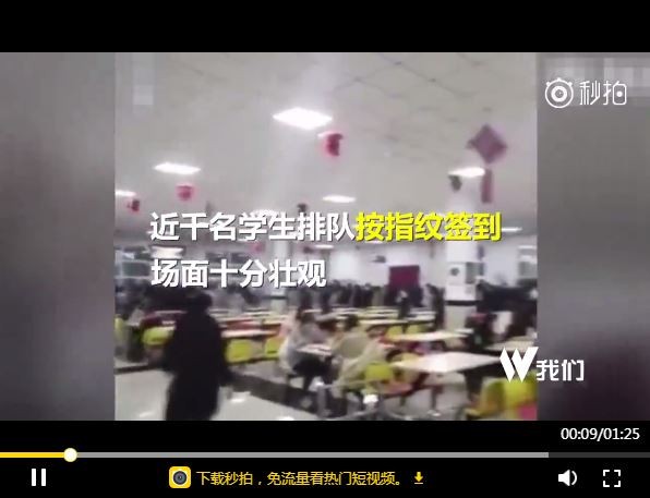 ▲吉林農業科技學院為了督促學生早起,在食堂內設指紋機,要學生早起打卡。(圖/翻攝自秒拍)
