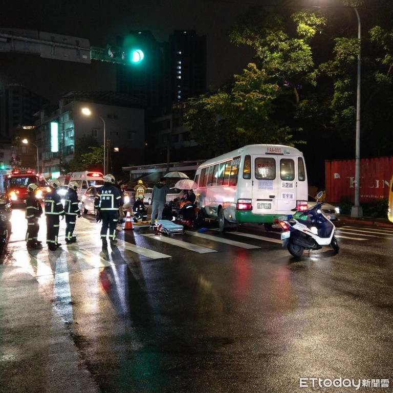 ▲內湖發生東南客運小巴與行人發生車禍。(圖/記者張曼蘋翻攝,下同)