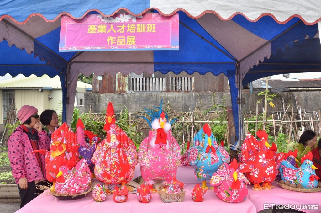 今年特別呈現客家文化產業-花布閹雞,由客家產業人才培訓學員們在老師彭榮美指導下展現產業成果,將來也預計將此文化商品客製化、量化,結合慶豐好客藝術村共同推展。