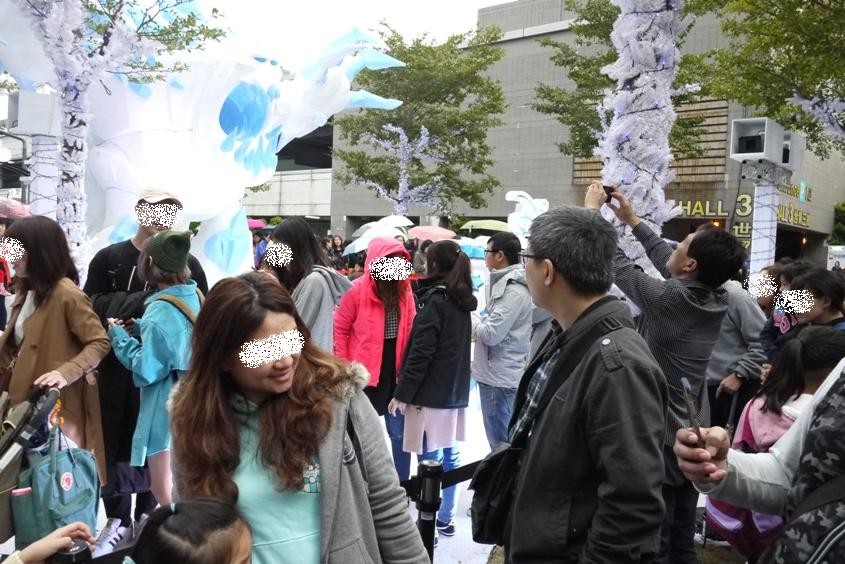 原先,主辦單位規劃了兩個區塊,外面是免費、不用購票就可觀賞拍照的大型場景展區,裡面的有趣活動跟公主扮裝,才需要花錢買護照進入,可是,人實在太多了,主辦單位不得不將免費的展區,臨時規劃為排隊動線。