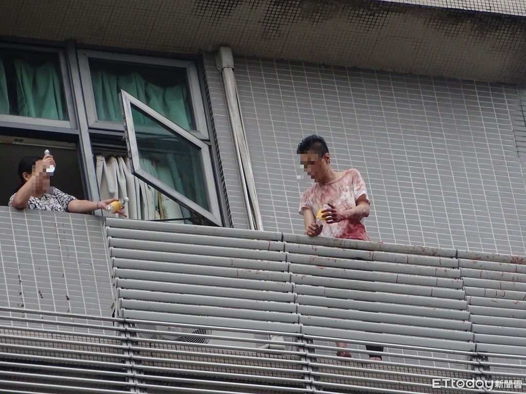 警消表示,救援過程中男子情緒相當失控,當時救護人員已準備從10樓架設繩索下降救人,但蕭男只要見到消防救護人員上前,便會持玻璃碎片、碎磁磚等刺傷自己的左臂、脖子等,大片鮮血染紅他的白色上衣。