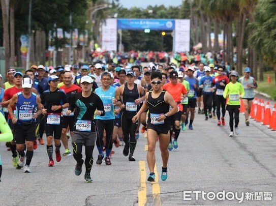 ▲花蓮市2017太平洋縱谷馬拉松清晨從美崙田徑場熱力開跑,5500多名選手在台灣最美的193縣道出發,沿著兩潭自行車道一路往南,以步伐看見花蓮美麗的山海。(圖/花蓮市公所提供 下同)