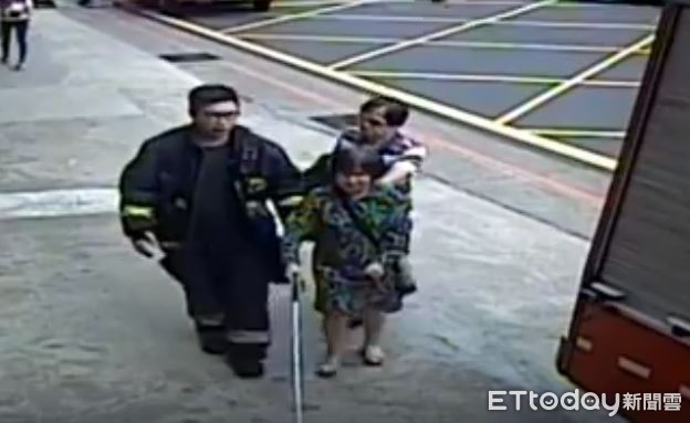 ▲消防暖男攙扶視障老夫妻過馬路。(圖/記者陳豐德翻攝)