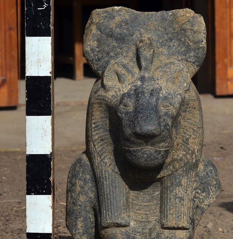 ▲最新出土的「戰爭女神」賽克邁特獅頭人身像。(圖/翻攝自埃及獨立報)