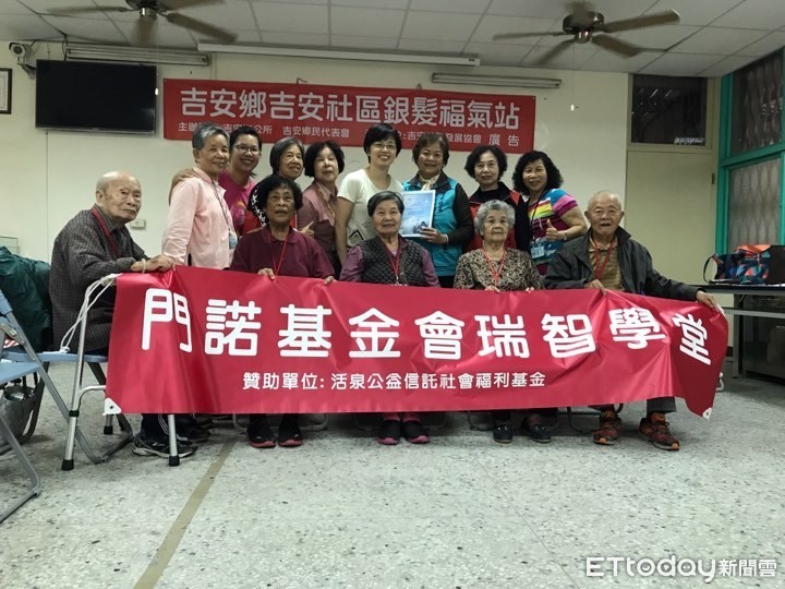 由活泉公益信托社會福利基金會、7-ELEVEN的全台門市零錢捐善款補助之「吉安瑞智學堂」5日在吉安活動中心,舉辦結業式典禮。因吉安老年人口佔吉安鄉人口15%,門諾基金會在今年首度開辦「吉安瑞智學堂」,此學期約有10位長者參與,自9月初開課至今服務近110人次,透過12堂課每次2小時的主題活動,幫助失智症長輩與家屬,運用各種懷舊主題,如童玩、學校、工作、結婚嫁娶、掃墓等,以圖片或實物操作方式,幫助長者回憶早期生活經驗,藉由非藥物治療活動進行健康促進。