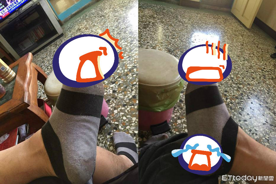 網友LuLu在臉書報廢公社張貼一組照片,從畫面中可以看見,男性的腳上穿著「歷經風霜」的透明襪子,只見腳趾頭上的灰色布料已被磨盡,只留下一層薄薄的皮,還能透光看見裡面的鮮嫩皮膚,最厲害的是,這層皮堅守住最後一個關卡,沒有被鞋子磨破或是腳趾頭踢破。