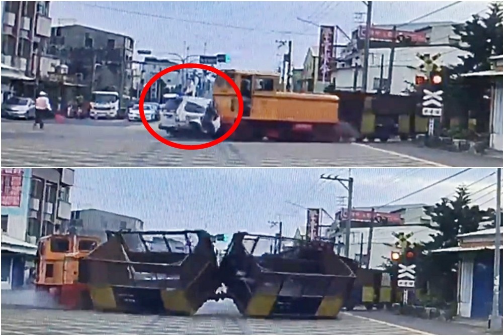 一名女網友當時要帶女兒去看醫生,行車紀錄器錄下驚險瞬間,當時管制人員站在路中軌道上揮著紅旗,平交道閃著黃燈、警鈴大作,但這輛休旅車卻是快速經過,但台糖小火車已經開出, 駕駛嚇得急煞向左偏要閃,但已經來不及,火車頭從右側撞上,一路擠壓撞到冒煙,後方7節車廂因此出軌翻覆。