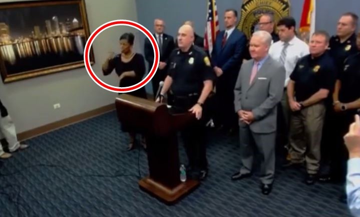 美國佛羅里達州坦帕市(Tampa)警方6日召開記者會,交代一起連續殺人案件。53歲的「手譯員」羅伯茨(Derlyn Roberts)站在一旁煞有其事的比劃;然而,她隨即被現場的另一名專業手譯老師拆穿,「她站在那裡揮舞雙手,就像在唱《聖誕鈴聲》(Jingle Bells)一樣。」