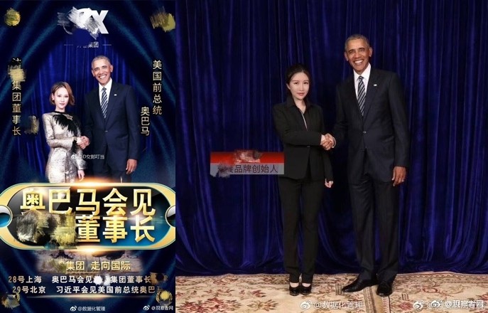 美國前總統歐巴馬11月28日在上海出席一個企業峰會,向在場2,500多位中國企業家發表演講,會後與一眾「微商」(透過微信、微博等社交軟件開店)合照。有「微商」透露,「見面會」的門票一點都不便宜,光是入場費最低就要5,980元人民幣(約台幣2萬7千元),「握手費」20萬元人民幣(約台幣90萬元);想合照的話,得先付25萬至30萬人民幣(約台幣113萬至136萬元)。