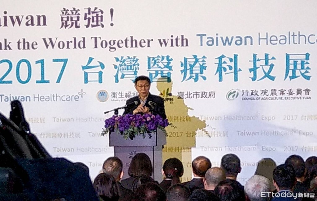 首屆台灣醫療科技展7日正式開展,聚集健康照護、居家健康、特色醫療等8個專館、超過1000個攤位。受邀出席的台北市長柯文哲在致詞時表示,這是台灣第一次把醫療強項用專業展覽的方式呈現,期盼未來有一天台灣可以輸出的不是ICT產業,而是醫療產業;他開玩笑說,過去常認為讀醫學系使人變笨,「甚至都淪落到血汗超時工作」,連護理人員都被帶衰變成勞累的產業。