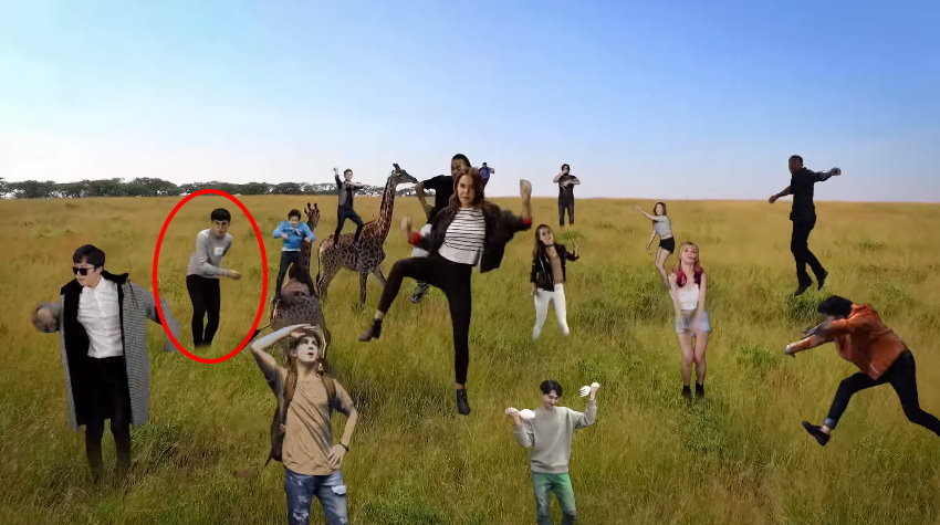 而在1分55秒到1分57秒,背景是在一處大草原,有許多人一起出現,其中畫面左邊可以看到熱舞的聖結石,雖只出現短短3秒,但已創下台灣先例。