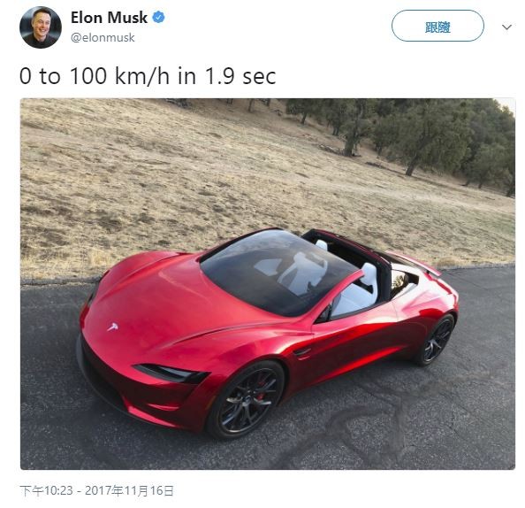 ▲特斯拉深櫻桃色敞篷跑車。(圖/翻攝自@elonmusk推特)
