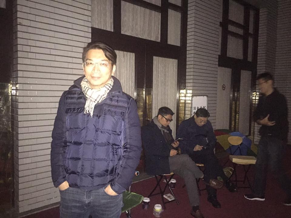 ▲徐永明為《公民投票法》部分條文修正草案夜宿立法院議場。(圖/翻攝自徐永明臉書)