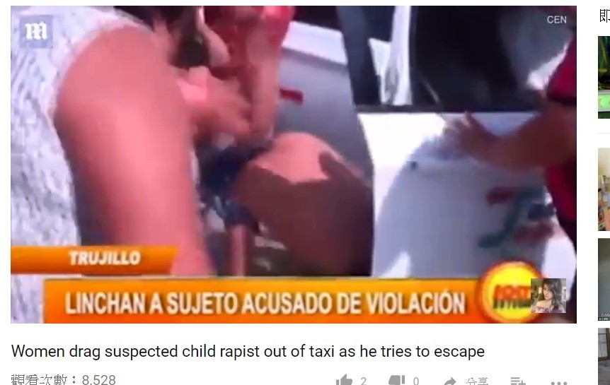 近日在網路上流傳一支「圍毆短片」,原來是秘魯一名戀童癖男偷偷潛入10歲女童家中,企圖要性騷擾對方,結果被一大群大嬸撞見,立刻跳上計程車想逃離現場。不過這群大嬸也不是省油的燈,合力將戀童癖男拖出車外,開始對對方動用私刑,瘋狂用手毆打這位變態。