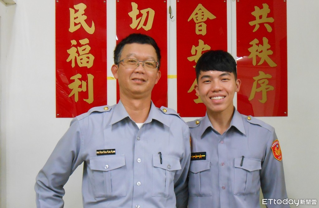 ▲市警局六分局鹽埕派出所巡佐施明昌(左)、警員顏呈,及時救人獲家屬感激。(圖/警方提供)