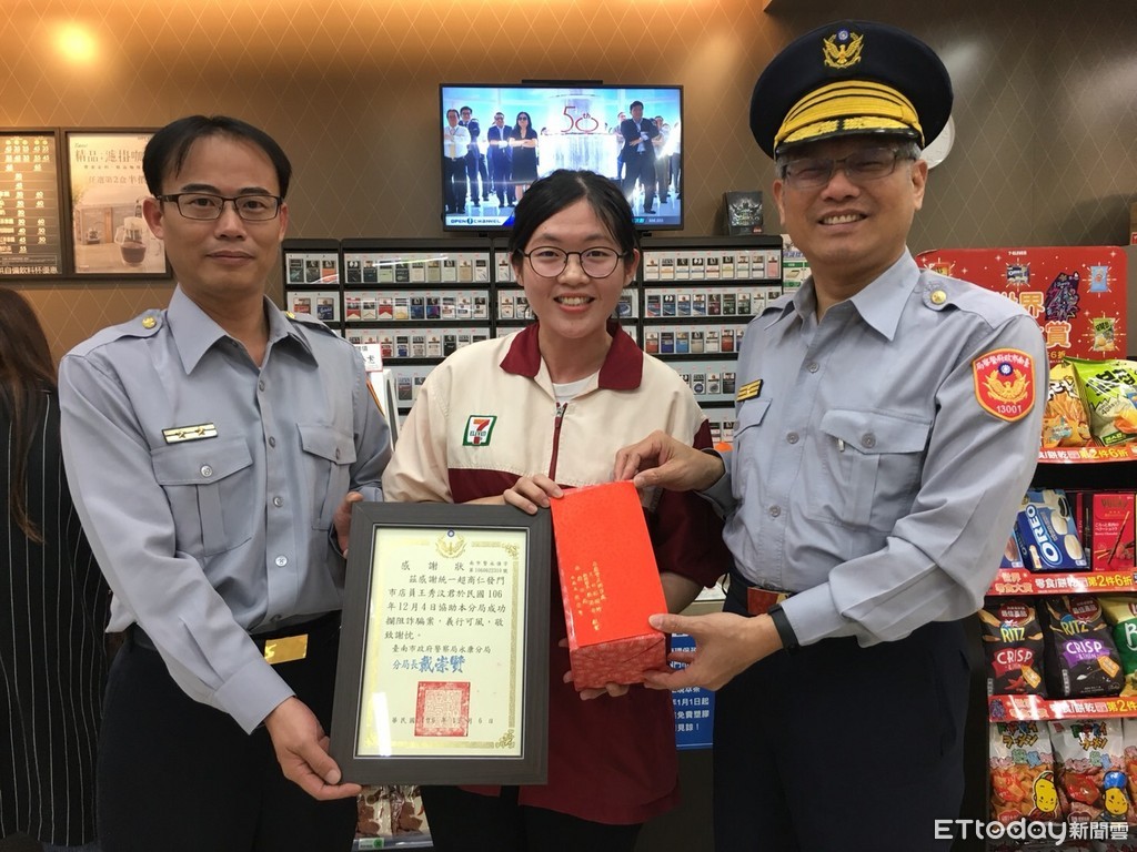 台南市永康區統一超商仁發門市王姓店員,4日21時30分見黃姓女子邊講電話邊操作提款機,直覺有異迅速向警方報案,並請望姓店員上前防詐騙關懷提問,經永康分局員警查處,係「假借個人資料外洩詐財」犯罪手法,王姓店員成功阻詐,永康分局長戴崇贒親至該店頒發感謝狀、警察公仔紀念品,以表謝意。