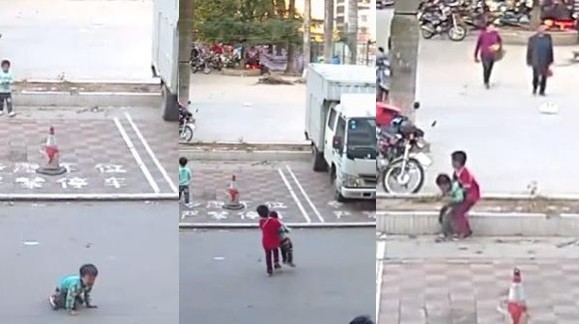 根據《看看新聞》報導,事發在2日白天,當時有數名孩童在路上玩耍、奔跑,其中一位男童不幸被三輪車撞倒,他躺在馬路中間、一時間爬不起來。此時,不但肇事車輛早已逃逸,旁邊商家的大人們也沒有主動上前關心,只是看著伸出援手的紅衣男孩陳玖易把他抱起、想要把他帶到安全的地方。