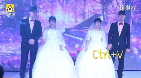 ▲仔細一看,台上的兩對新人怎麼像長的那麼像?(圖/翻攝自梨視頻,下同)