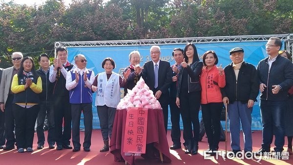 國民黨桃園市黨部10日於桃園區中平路旁的市二公園,舉行123周年黨慶活動。黨主席吳敦義親臨會場,抨擊民進黨政府推動不當黨產條例及促轉條例,都有強大的針對性,造成社會紛擾。吳敦義呼籲大家團結一致2018把桃園贏回來,2020同心協力贏回重新執政。