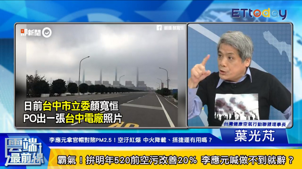 葉光芃也借用台北市長柯文哲的話說,「空氣不分藍綠、肺癌也不分藍綠」,在空氣面前每一個人都應該是謙卑的。