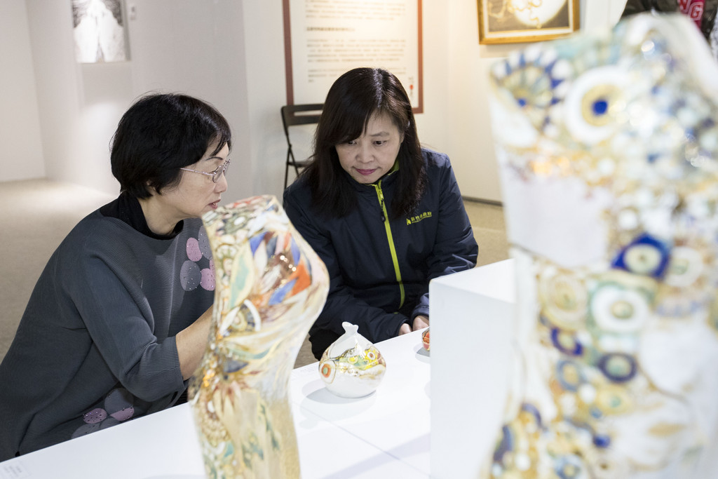 第三展區「流線與圖紋之美」藝展邀請8位日本藝術家,透過「金工/陶」立體作品,敘述藝術家獨特的美學性格及美學養成,策展人朱書楷指出,日本金工由武士道文化延伸發展而來,技藝表現在明治時期到達頂峰,作品的精緻細膩,讓文藝復興發源地的歐洲也為之驚豔。