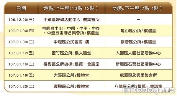 為了給予繼承人最直接的協助,該局主動整合地政、國稅、戶政的專業與公所區里聯絡功能,及桃園市三大地政士公會的協助,辦理繼承登記13區巡迴聯合宣導列車活動,並從12月開始聯合在本市各區舉辦說明會,提供民眾有關繼承登記申辦規定、專人諮詢等服務。
