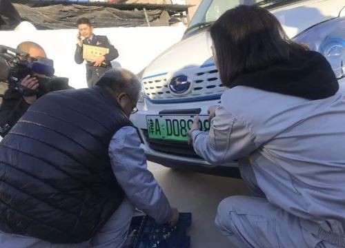 天津市11日發出第一張綠色的新能源汽車專用車牌,除了把車牌號碼從五為提升至六位數,車牌上還新增二維條碼、防偽網底暗記、雷射圖案等防偽技術,確保車牌唯一性和生產源頭追溯,提高了防偽性能。天津公安交管部門指出,新能源汽車專用號牌啟用後,現有新能源汽車可以自願換領專用車牌。(天津網)