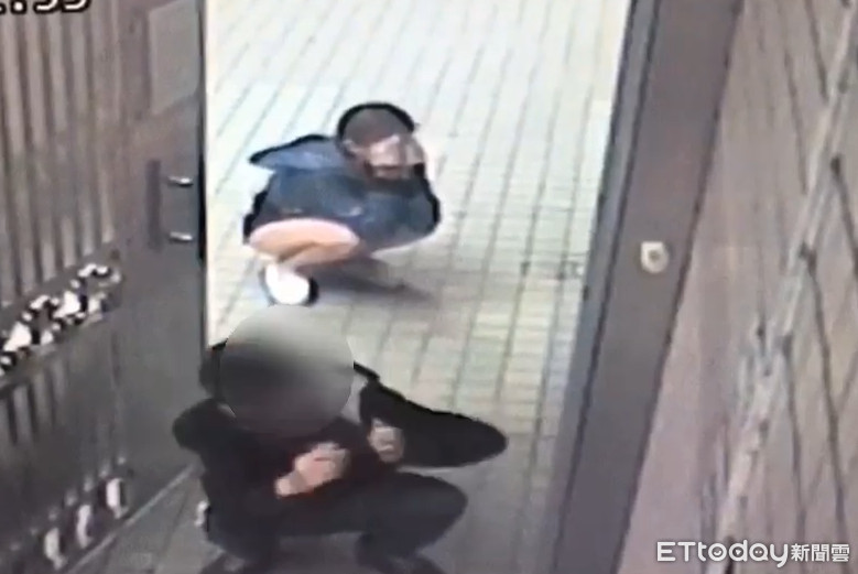 社區監視器畫面拍下,侯男10日又遭徐男打電話向索討5000元,他因不願意給,遭對方和女友一起衝到住處逮人,侯男先頭戴安全帽衝進警衛室,接著徐男謝女也緊跟著衝進來,雙方發生拉扯推擠。