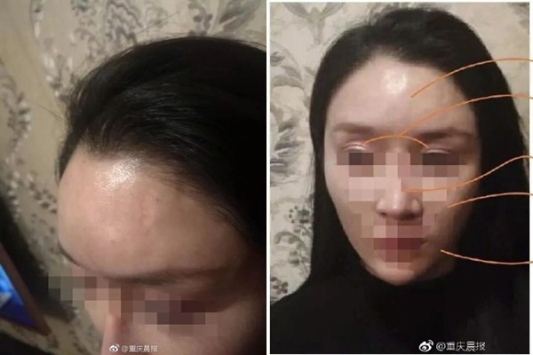 ▲青青表示自己才剛花22萬元整型,馬上就被砸出凹洞。(圖/翻攝自重慶晨報微博)