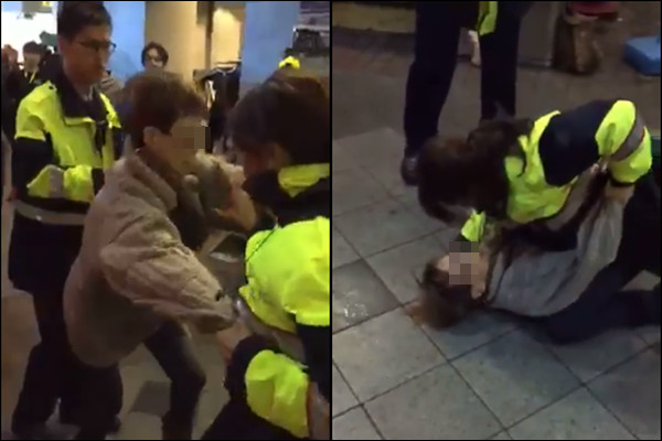 一名男網友在臉書不公開社團「爆料公社」貼出影片,表示晚間8點30分行經西門町,「這女的疑似喝醉鬧事襲警,被女警摔在地上」。