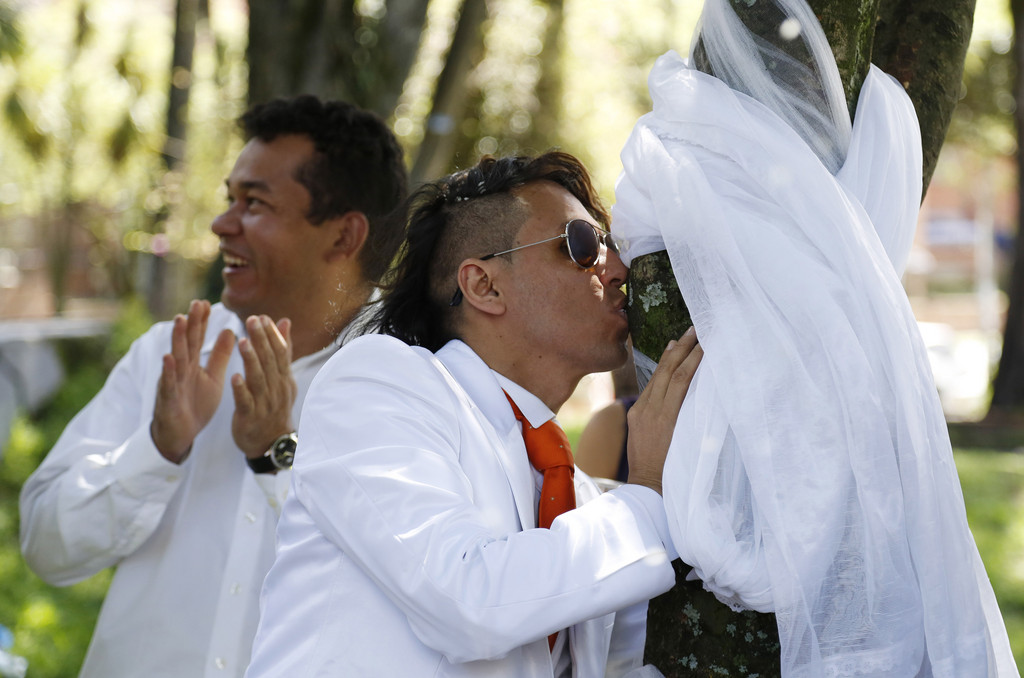 ▲秘魯藝術家理查(Richard Torres)在2014年時,也與樹舉行過婚禮。(圖/達志影像/美聯社)