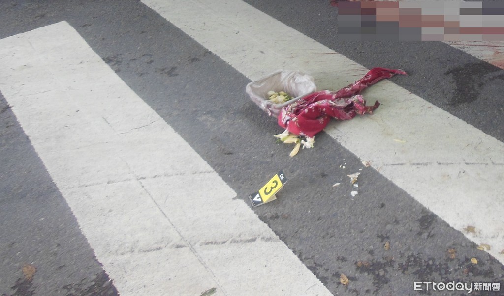 ▲阿婆遭水泥車輾斃,胸腔變形吐血慘死。(圖/記者林煒傑翻攝,下同)