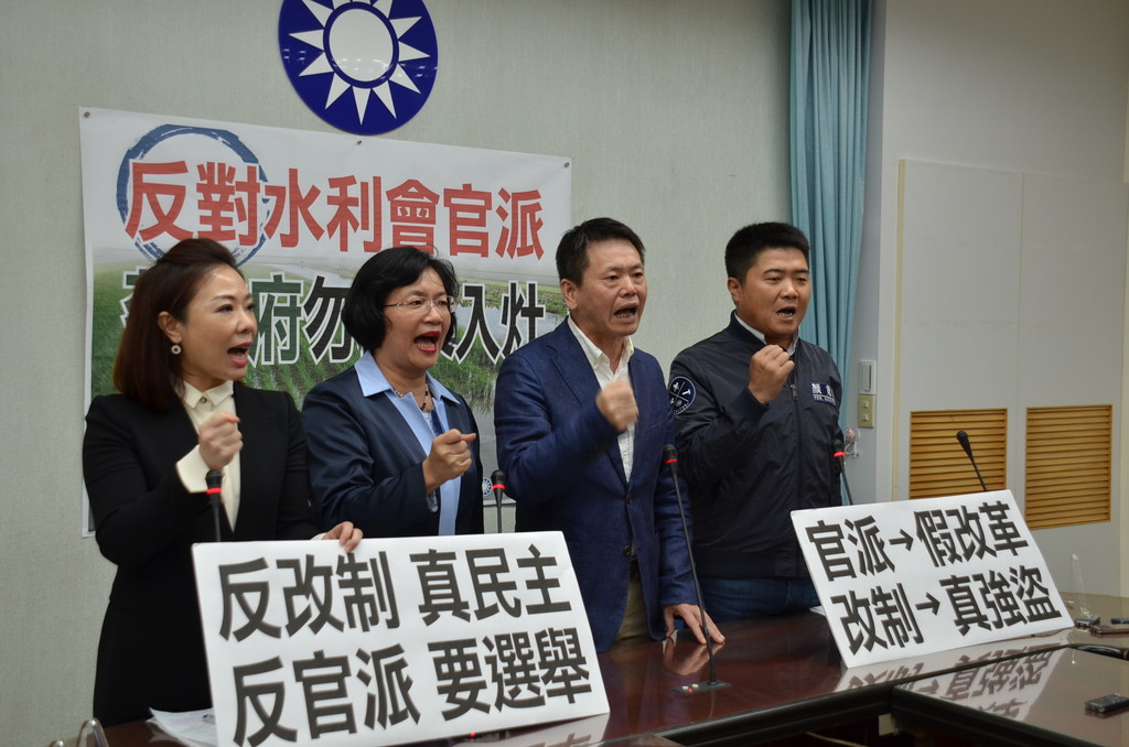 國民黨團進一步批評,民進黨執政後不但治國無能,更以轉型正義等名義打擊競爭者勢力範圍,舉凡與國民黨有關的全部都不放過,無論是黨產、婦聯會、救國團等,都成為下手目標,如今連農漁會系統也不放過,將政治髒手再次伸向農田水利會,假改革之名大開民主倒車,「假官派、真綁樁」。