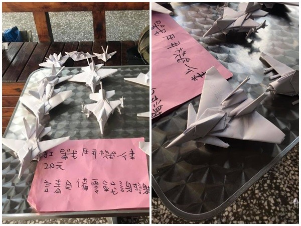這則PO文吸引許多網友關注,截至15日凌晨1時已經有1900多次分享,還有超過500則留言。不少網友都說,「摺成這樣才賣20,用愛心下架」、「手藝真的很巧,老闆也佛心,大家用新台幣下架他們」、「賣20太便宜了」、「這是模型等級的紙飛機耶」。