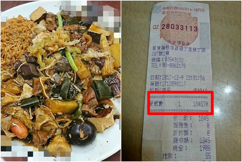 日前女網友在「爆廢公社二館」PO文表示,「這一盤,肉像風化過的乾、菜太瓜、玉米筍有酸味,滷蛋根本鐵蛋,而且一盤要920,然後我們還點了兩盤」。但店家卻反擊表示PO文沒付上發票,如果有算錯願意補償,一照片看起來應該大約點了660元,若是刻意誹謗不排除提告。原PO又在14日晚間貼出發票,證明兩盤滷味真的花了1845元。