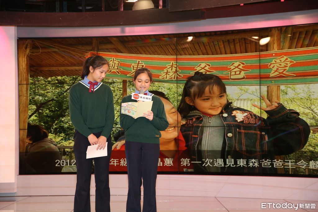 曾與東森爸爸王令麟抱抱的桃園復興鄉高義國小學童姜晶蕙及范紫芸,今天(12/15)驚喜現身東森慈善基金會舉辦的「送愛到部落捐贈儀式」,相隔近五年兩人已長成亭亭玉立的少女,而且是品學兼優的大華中學公費生,兩人不改初衷感念愛的早餐帶給她們的溫暖,希望長大後能延續精神回饋社會,一番真情告白感動眾人,連東森爸爸王令麟也頻頻拭淚。