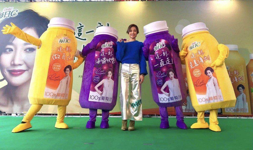 A-Lin 12/15現身新光站前廣場,為《每日C 100%果汁》站台,現場與粉絲熱情互動,超親民形象讓全場氣氛high翻!《每日C 100%果汁》在現場也同時提供專屬客製瓶活動,讓參加活動的民眾利用超萌拍貼機,即可製作專屬自己的每日C,為自己補充正能量也留下代表自己的「這一刻」。