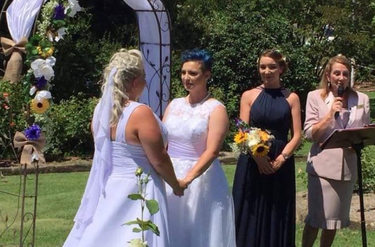 ▲澳洲首對完成結婚儀式的女伴侶。(圖/翻攝自臉書/Equal Marriage Rights Australia)