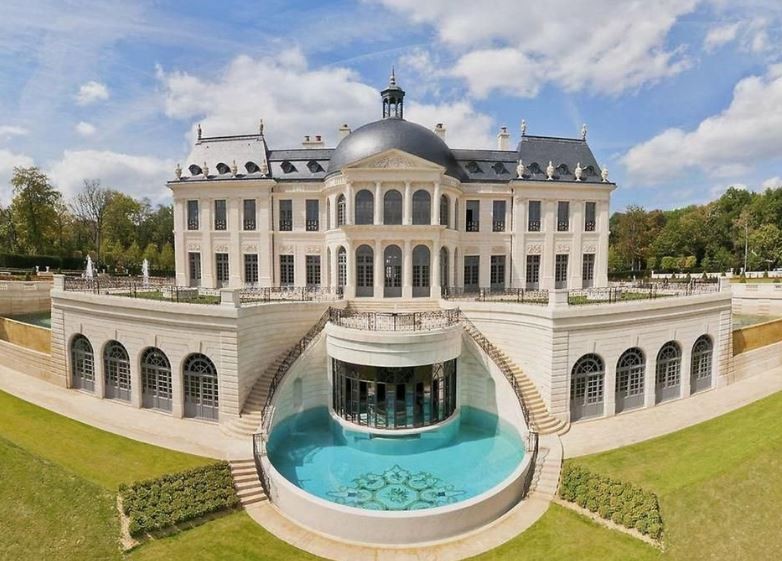 路易十四城堡座落在占地57英畝(約7萬坪)的綠地,耗時3年於2011年完工,擁有貼金箔的噴水池、大理石雕像和樹籬迷宮等設計。主建築約有1400坪,內有酒窖、電影院,還有水底冥想室,抬頭就能看見魚兒悠游。此外,空調、燈光、音響和噴泉都能以iPhone遠距離控制。《每日郵報》指出,美國社交名媛金卡戴珊(Kim Kardashian)曾考慮在這座法式莊園舉辦與饒舌歌手老公肯伊威斯特(Kanye west)的婚禮。