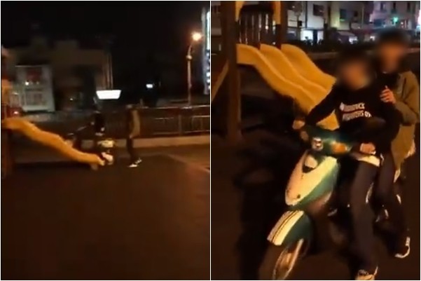 整段畫面在臉書上曝光後引來網友撻伐,「可憐成那樣,缺德!」、「年輕人,終究是年輕人」、「不戴安全帽、沒開車燈,還破壞公共設施」、「無聊當好玩?真是沒品」、「煞氣a電動車」、「吃飽太閒,丟臉!」