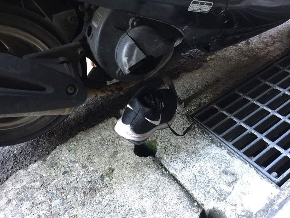 ▲小孩不綁鞋帶,卡進機車。(圖/翻攝爆料公社,下同)