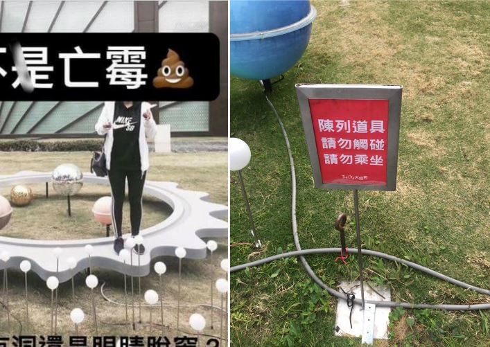 原PO爆氣在照片底下寫道,場外已有陳列告示牌向遊客說「請勿觸碰」,怎麼還有人為了拍,「亡霉照」而踩在上面?「妳又不輕,道具很脆落的!麻煩有點公德心好不好?」