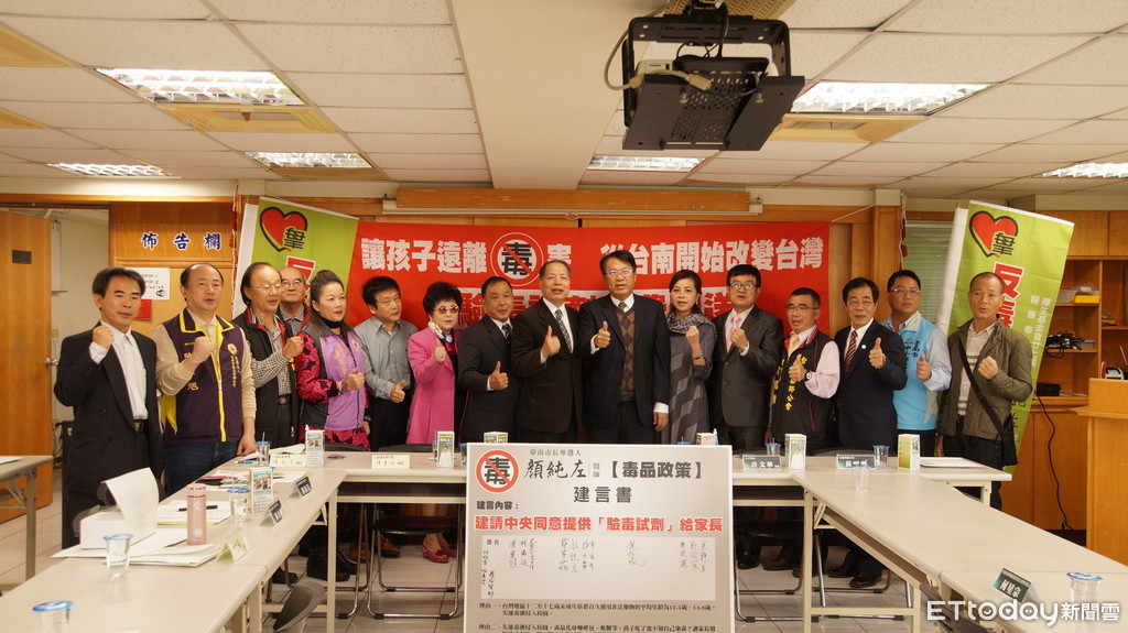 ▲台南市長參選人顏純左醫師,在台南市藥師公會召開「讓孩子遠離毒品,從台南開始改變台灣」,將以大台南各地的藥局為據點,成立「反毒愛心站」贈送驗毒試劑給家長。(圖/顏純左提供)