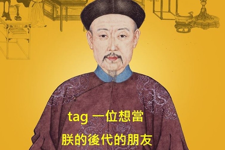 配圖上還「別具意義的」寫上「tag一位想當朕的後代的朋友」,引發網友留言,「想Tag何二姐」、「何先生怎麼tag?有人會嗎?」、「請問皇民有打折嗎?還是會被打到骨折~」、「憑祖譜再享折扣」、「也太應景了,快笑死了。」