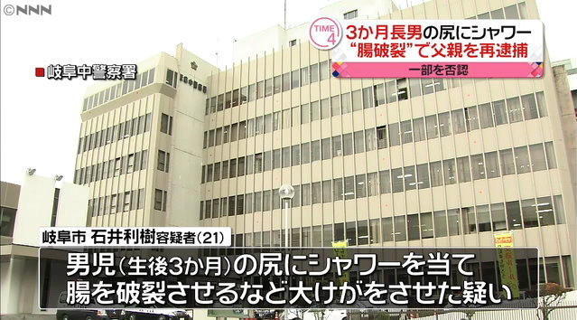 日本岐阜縣岐阜市21歲男子石井利樹把熱水灌進3月大的兒子肛門,害男嬰重傷住院,他被逮後辯稱「不是故意要害兒子受傷」。