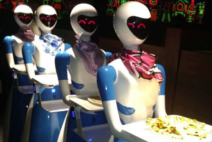 ▼機器人大軍取代服務生。(圖/翻攝自臉書/Robot Theme Restaurant)