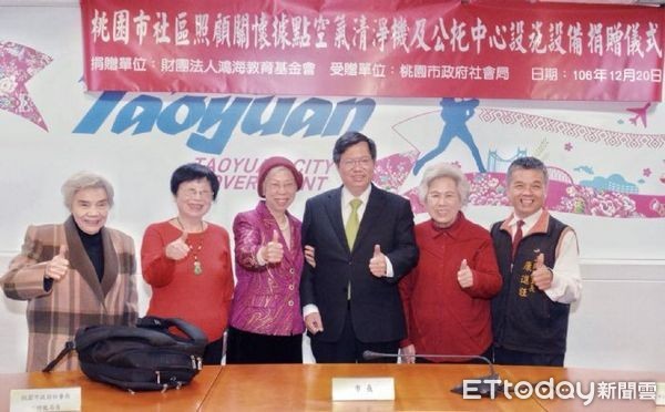 ▲▼鴻海教育基金會持續照顧老少,捐贈200台空氣清淨機給桃園市關懷據點,以及200萬元現金做為公托中心設備費用。(圖/桃園市政府提供)