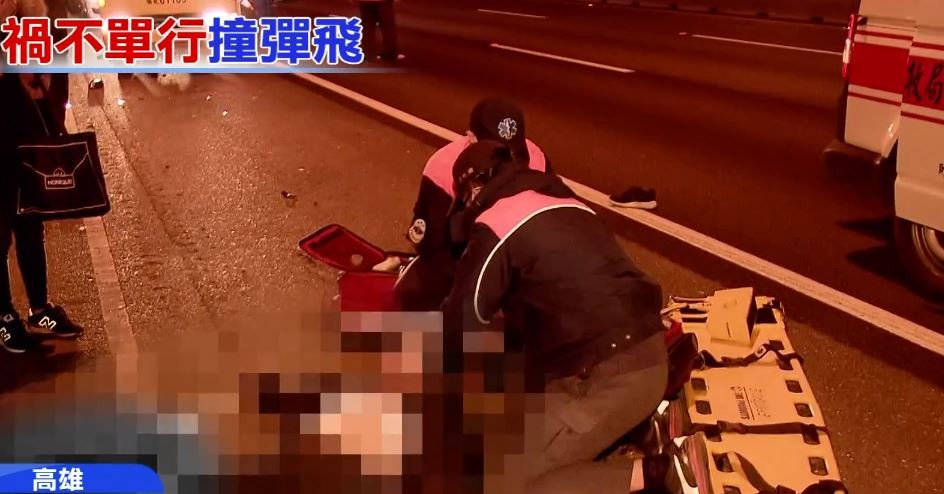 警方調查,歐姓男子開著白色轎車載著女友行經楠梓路段時,突遭後方林姓駕駛開的黑色轎車追撞,雙方將車開往路肩協調,歐男站在路肩上打電話報警,不料遭後方高速行駛的貨車撞上,整個人彈飛30公尺,大量出血傷勢嚴重。