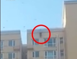 河北保定易縣某個小區21日發生意外,一名男子因為不明原因懸空扒在30樓層高的樓頂邊緣,他嘗試挪動身體,似乎是為雙腳尋找著力點,但後來雙手沒力,整個人直墜地面。(上圖/取自微博,下同)