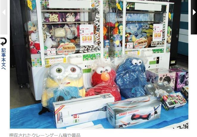 日本大阪市有娃娃機業者在機器動手腳,讓顧客永遠拿到不到高價商品,店員一開始會用「免費玩3次」的話術吸引人潮,再用「成功的話就全給你」等說法吸引客人不斷投錢,從2015年到現在至少有36人受騙,不法所得高達600萬日圓(折合新台幣158萬元),嫌犯共計6人於23日被捕。